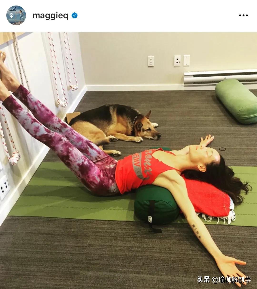 常年坚持练习瑜伽,像乌鸦式、肘倒立这些体式,对MaggieQ而言更是轻而易举!这几个体式没个几年瑜伽功力恐怕也很难做到!
