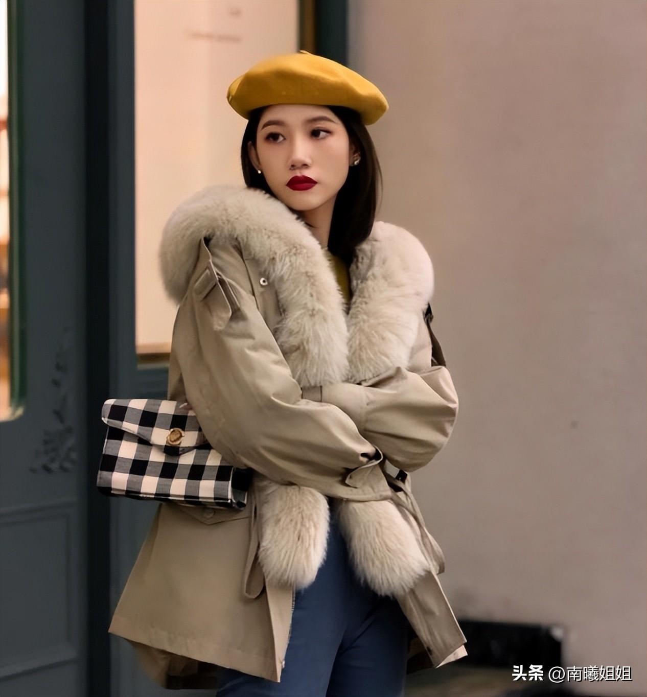 对于大衣难以割舍的女人,我们可以从着重的风格设计上来对比派克服。大毛领和短款版型的设计,可以增加上半身的穿衣量感,从而帮助腿粗的女生,很好地弱化了身材短板。相较于长款大衣拖他的设计,小个子女生穿搭派克服才能更好地着装出,冬季的造型轮廓和比例。