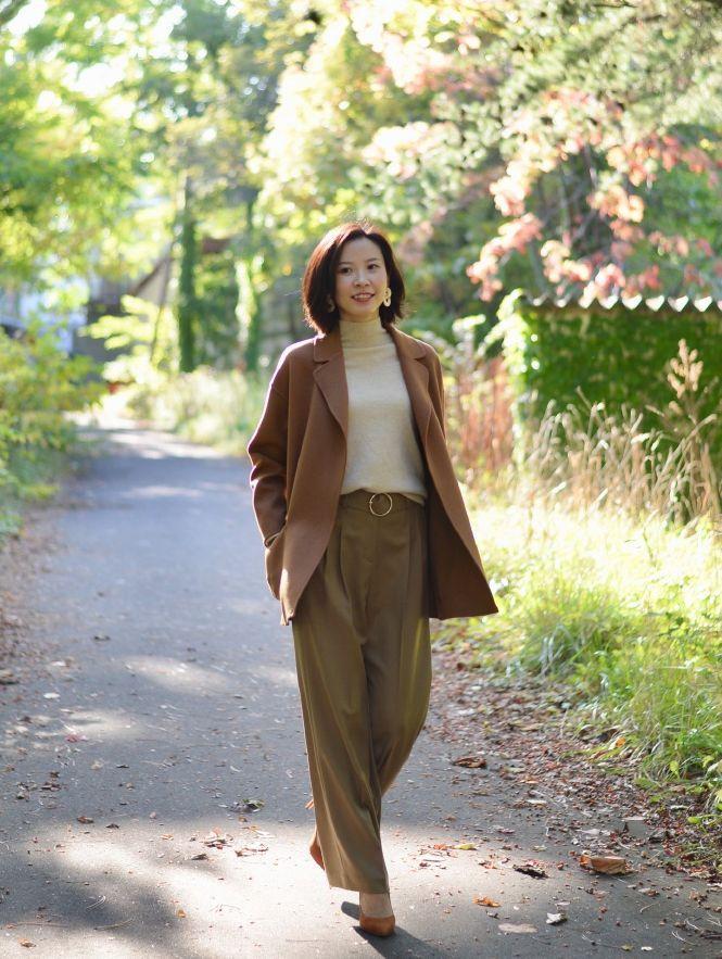 深浅分明的色彩搭配,不仅可以划分上下半身的身材比例,还能掩饰身材问题。如果腿比较粗,可以穿深色裤子搭配浅色上衣,“上浅下深”让整体身形更加协调。