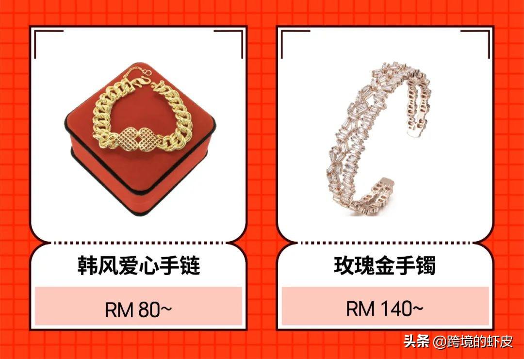 马来站点在时尚的选择上更为保守,手镯、手链及脚链等不易展露、较为低调的饰品搜索量通常较高。但当地消费者更偏爱更为丰满的设计,与许多市场时兴的简约风不同,马来西亚热销的饰品中通常装饰以较多花纹,手链或脚链上的挂饰更大更。