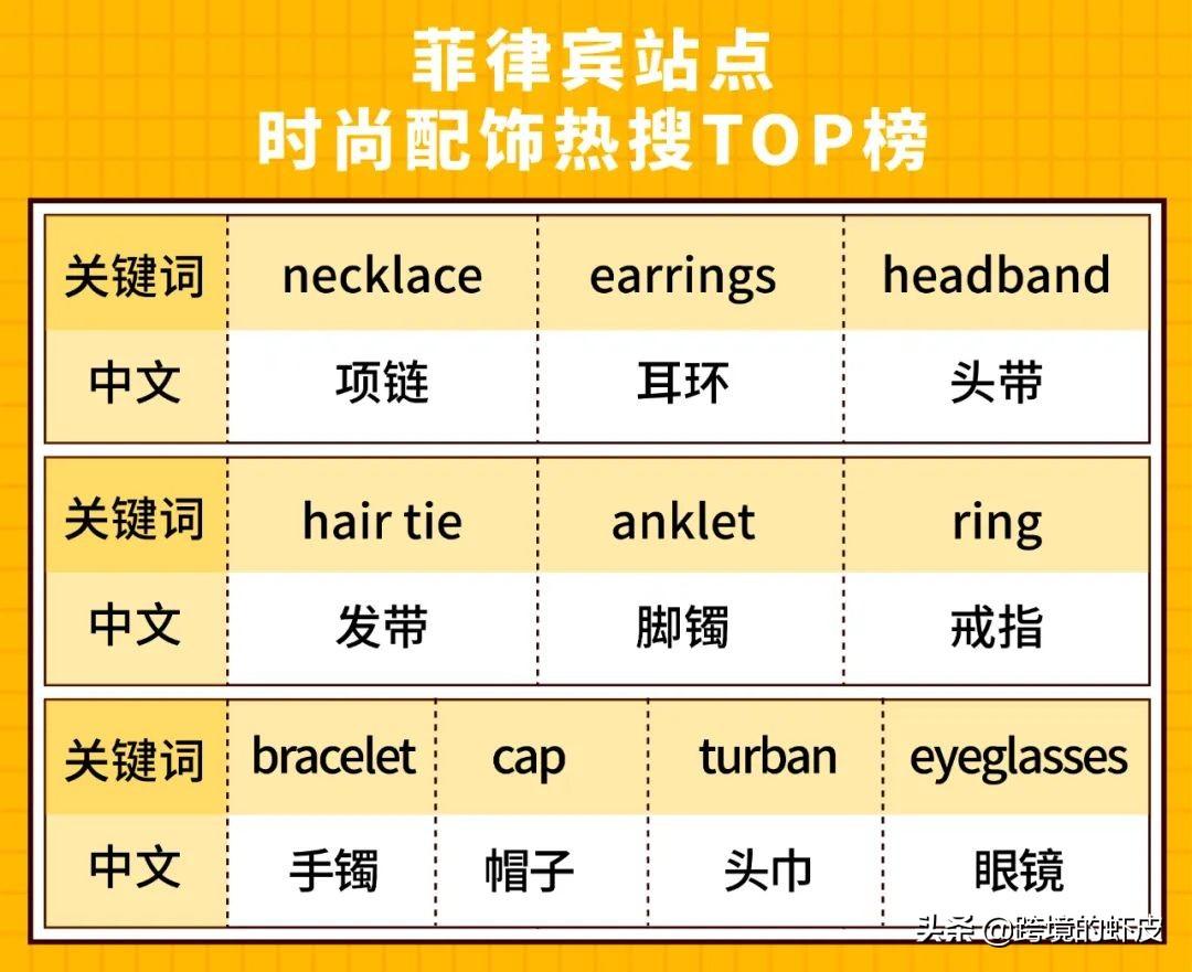除了首饰以外,近风靡各地的“大肠发圈”在菲律宾站点同样呼声高涨。虽说名字有点不雅,但是大肠发圈不仅款式上可爱百搭,扎头发时舒服不会勒头,不管是居家还是出门都合适。大肠发圈的种类有较多种,各位卖家可更关注今年较为流行的两款:塑料大肠发圈与纯素色发圈。前者色彩通透,发带内还可加入各种装饰小玩意儿,能给深色的发色增添层次感;纯素色大肠发圈更为百搭,并且适合柔顺的发质,因此在卷发较少的东南亚地区相信都会有不错热度。
