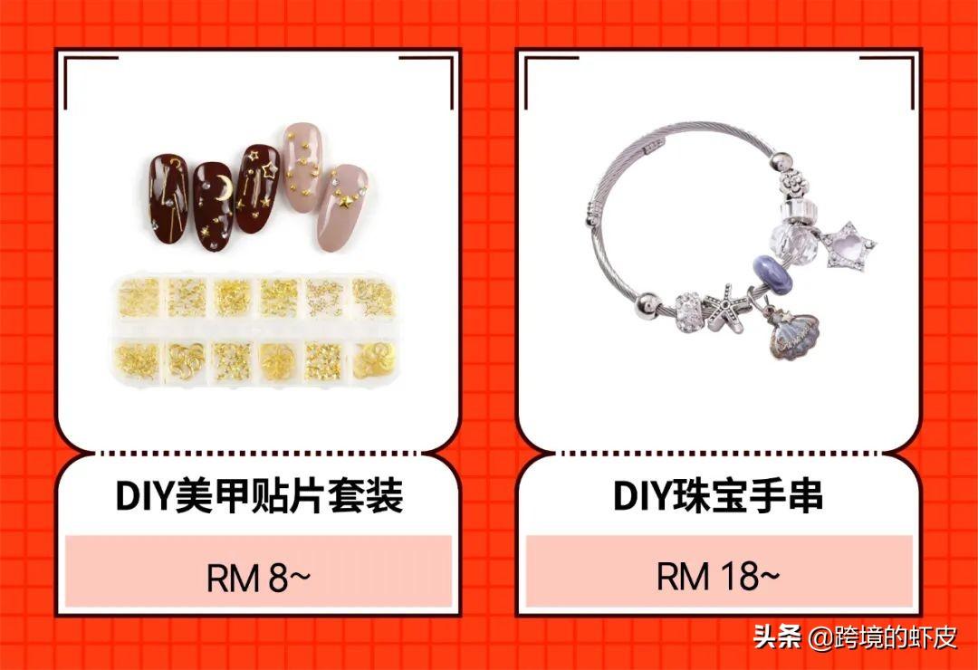 除了直接购买饰品成品外,许多女性消费者也会尝试一些自制饰品,例如珠串、美甲贴片等。由于近居家的时间更长,久未上榜的DIY饰品套装也重新攀回了TOP榜中。DIY饰品套装的内含物越丰富越好,能够让制作者有更多的搭配选择。