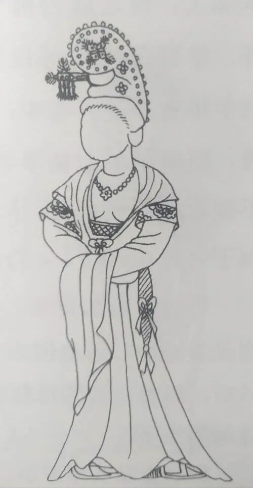 裙、衫之外,唐代女装皆加帔,所以又可泛称为“帔服”。帔子不见于汉代,所以《中华古今注·女人披帛条》谓“古无其制”。