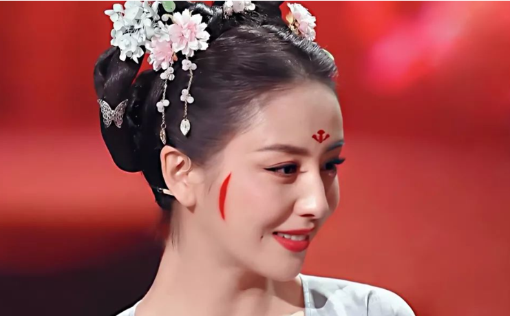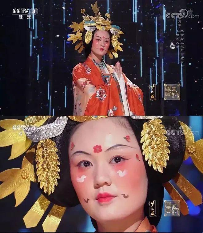 佟丽娅的斜红妆。来源/节目《宝藏》截图
