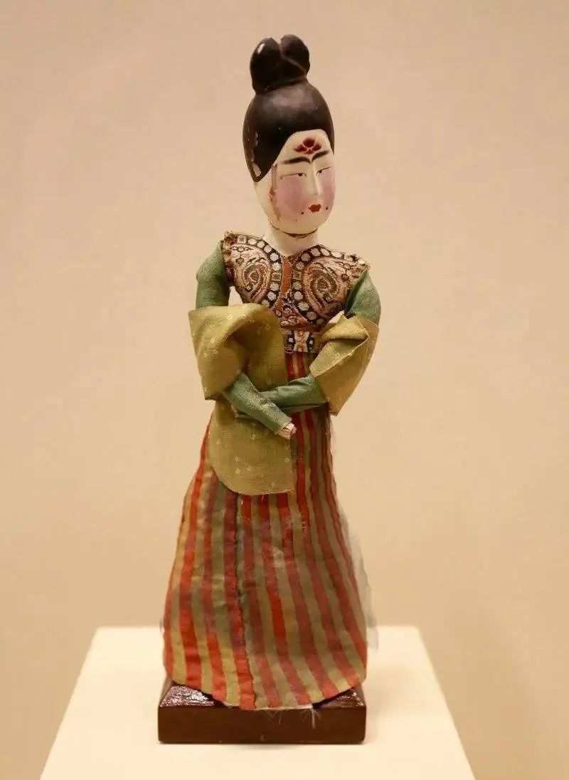 《新唐书·车服志》:“半袖、裙、襦者,女史常供奉之服也。”证以图像,如永泰公主墓壁中所绘的侍女,其身份应与女史为近,正是上身在衫糯之外又加半臂。而且这种装束不仅宫阁中为然,中等以上唐墓出土的女俑也常有着半臂的。