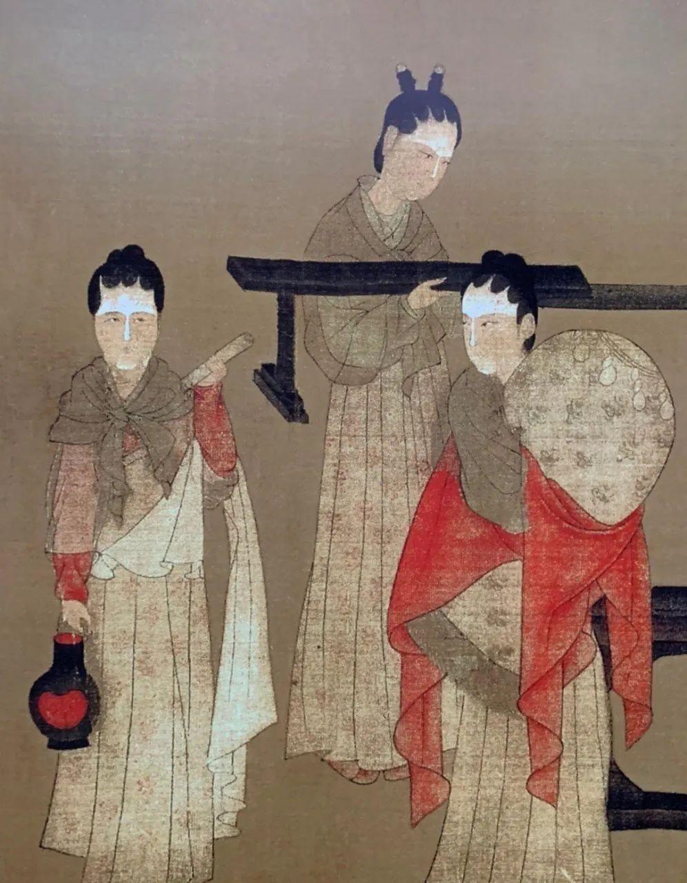 《北齐校书图》中的妇女,眉骨上部都涂有淡黄的粉质