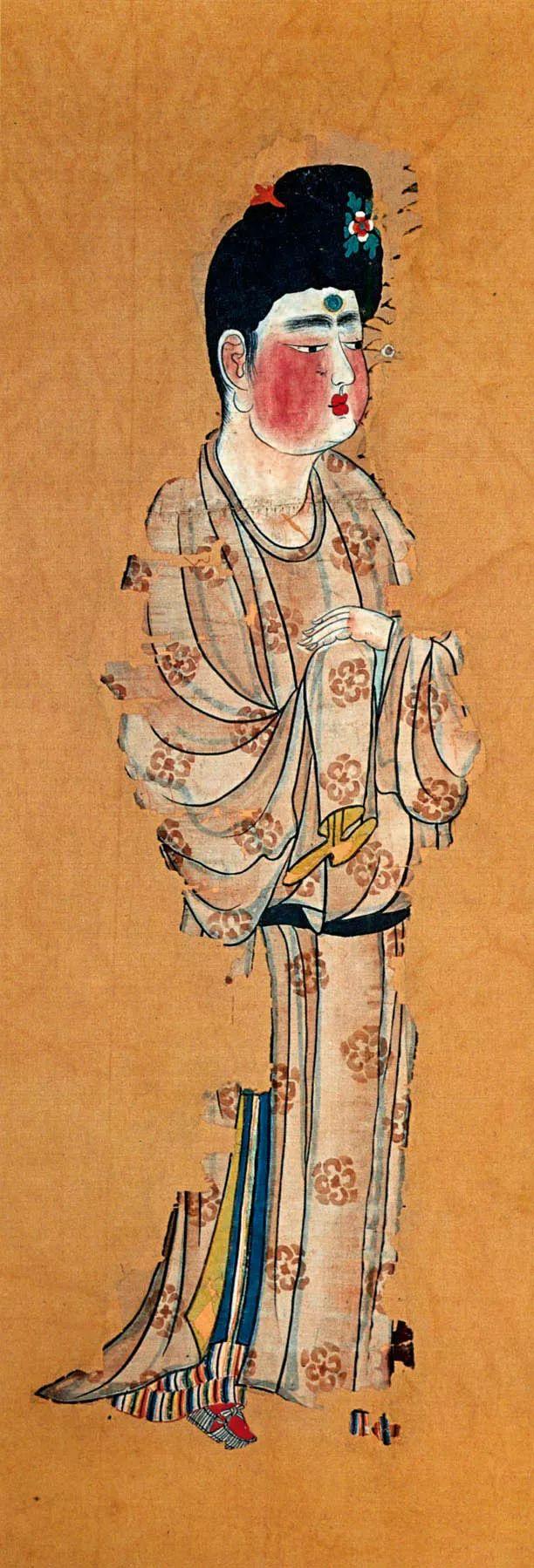 唐代绢画《仕女图》,穿翻领袍胡服的女子,吐峪沟古墓出土