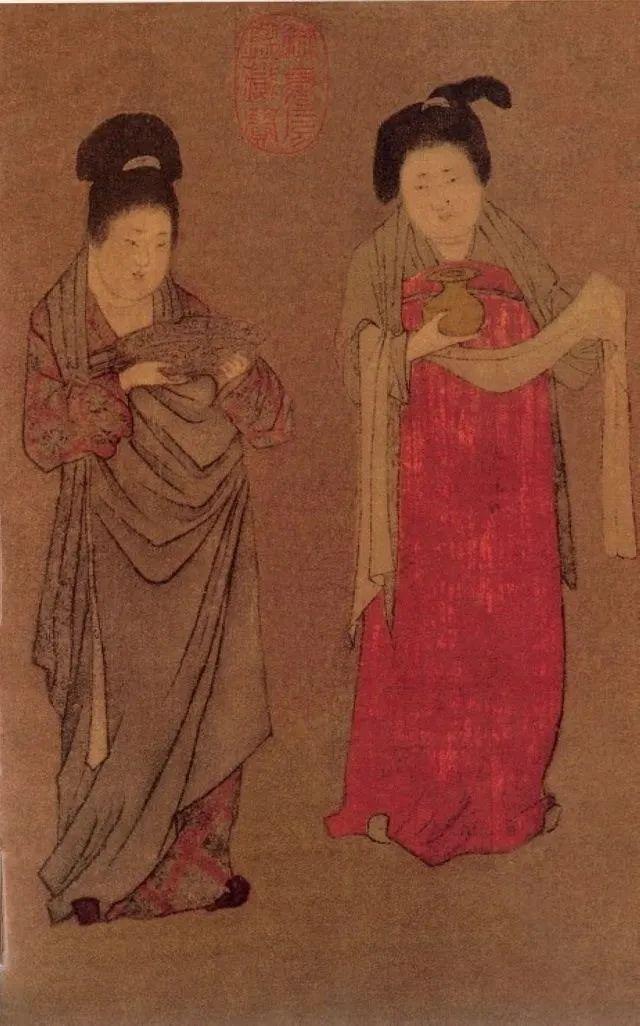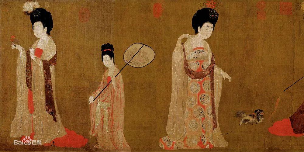 可见唐代女装无论服饰丰俭,这三件一般是不可缺少的。与宋代不同,这时常将衫的下襟掩在裙腰之内,所以显得裙子很长。不仅长,还相当肥大,普通是用六幅布帛制成,即如李群玉诗所谓“裙拖六幅湘江水”。