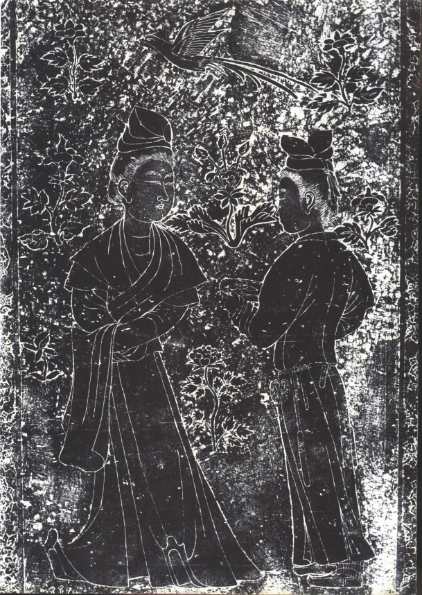 永泰公主石椁线刻画 左为单螺髻,右为双螺髻