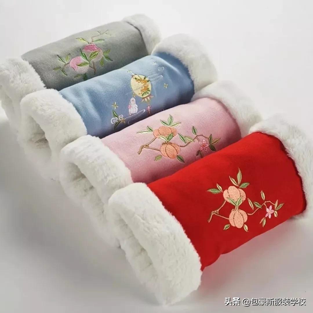 除了衣服之外,头部、手部的保暖则需要一些御寒的帽子、手套等。在马王堆出土的文物中,就有露指短手套,或用信期绣,或用朱绫纹罗,古朴而美貌。北朝和明代,也都有手套出土,且为全部包住的样式。
