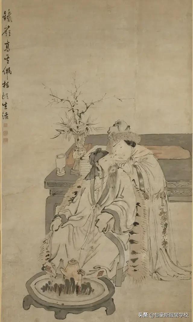 如果天气再冷一些,古人便会在衣服里面加垫一些絮类。