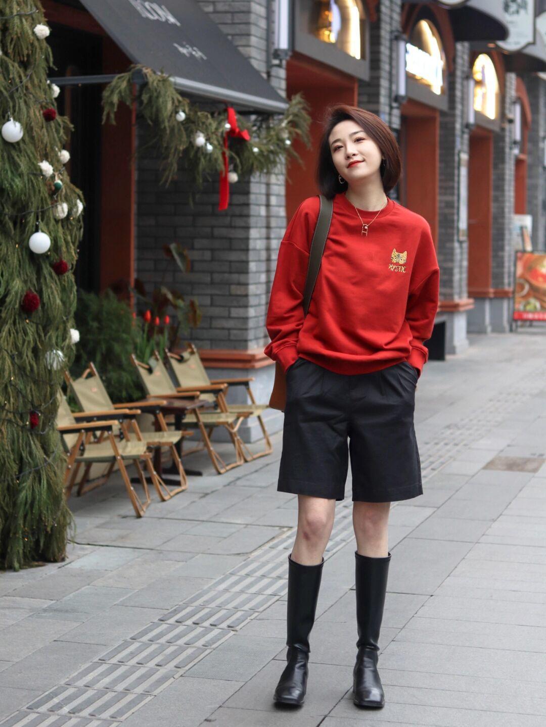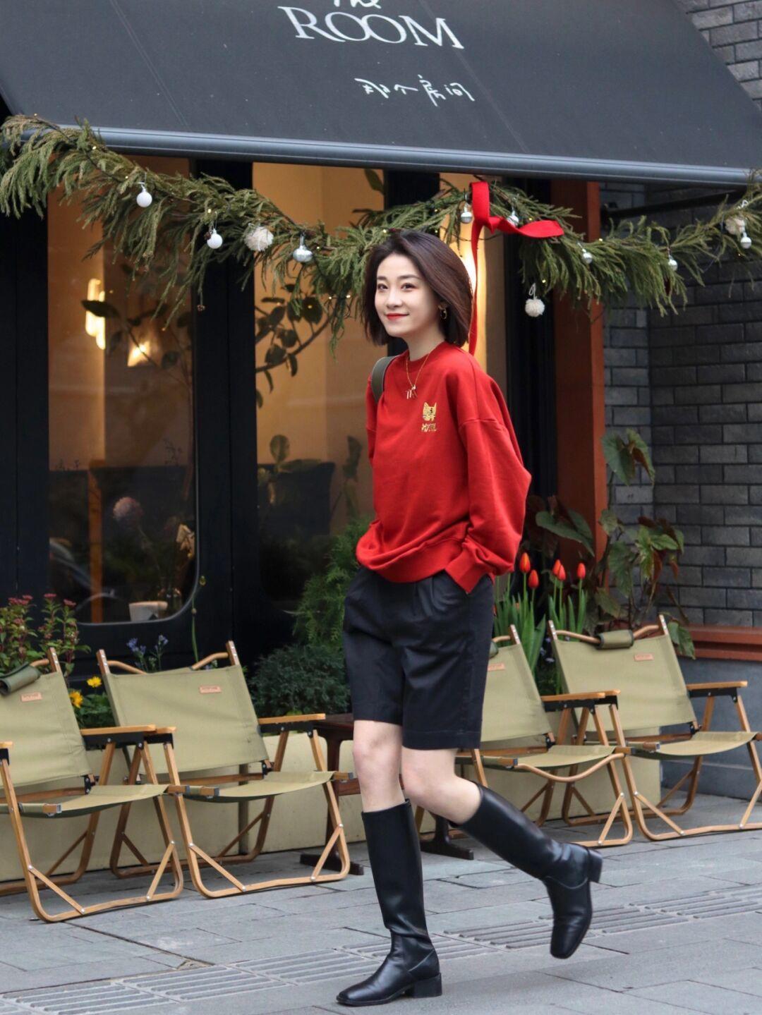 博主搭配了一条黑色的短裤,秀出了自己的纤长双腿,这是比较凸显身材的穿法,不过在冬季穿就未免有些太“美丽冻人”了,所以大家可以借鉴博主的造型,试试“及膝靴”,这样就能起到修正腿型的作用,还会减少腿部留白,这样就不会让你觉得太冷了。