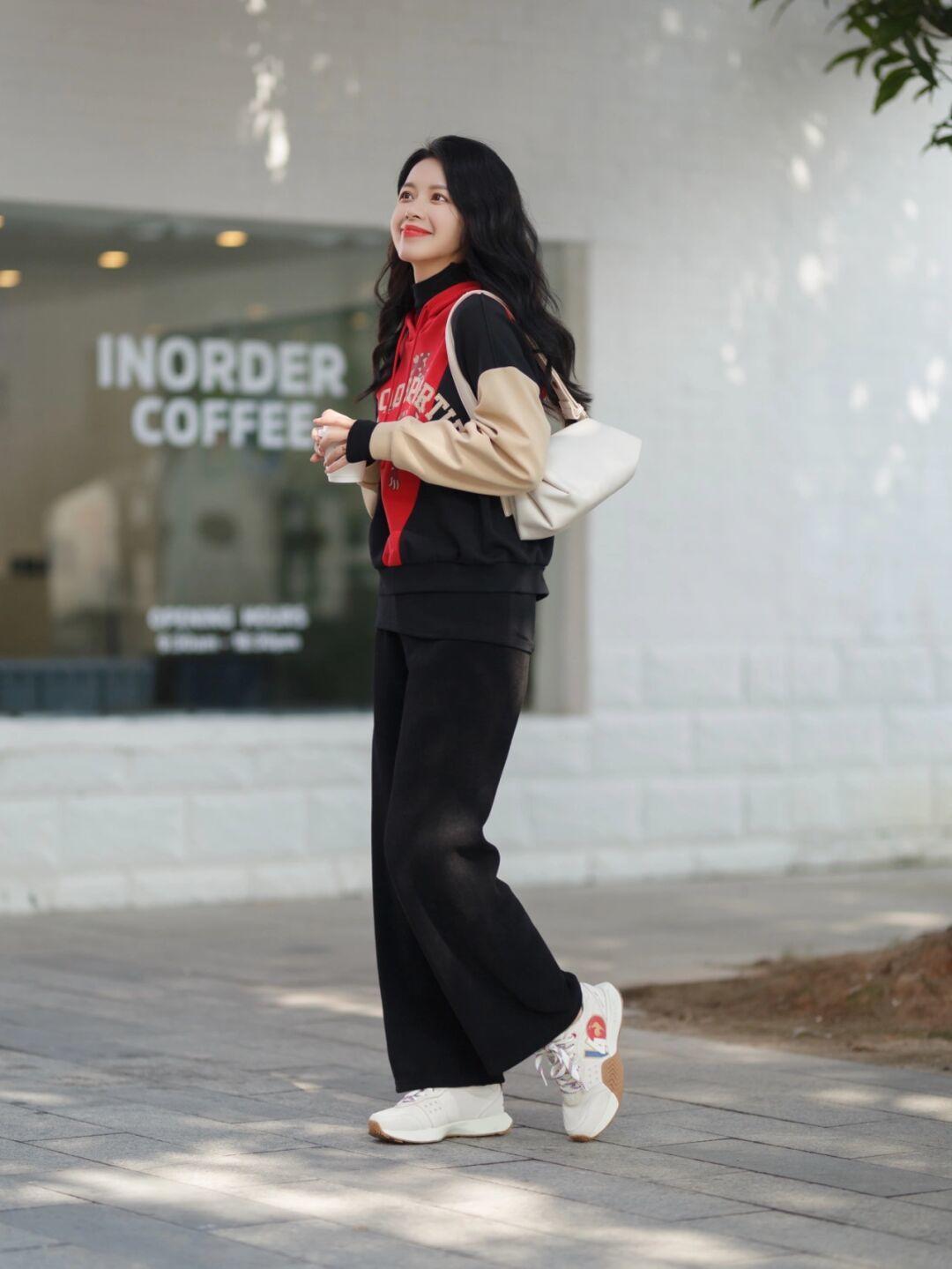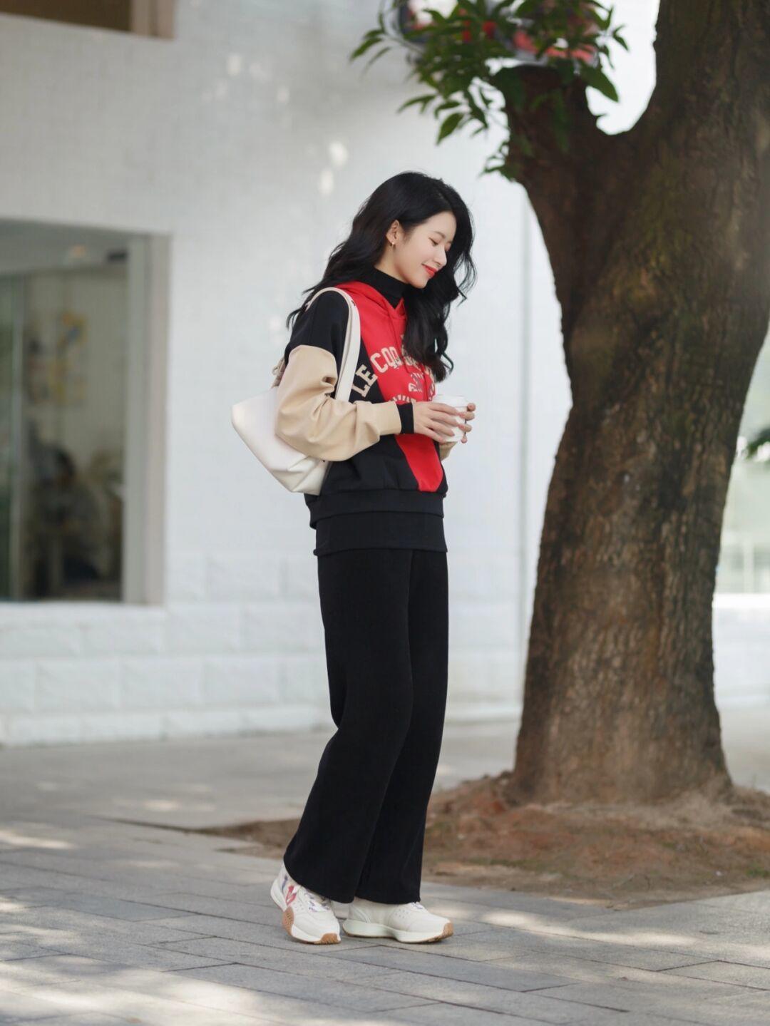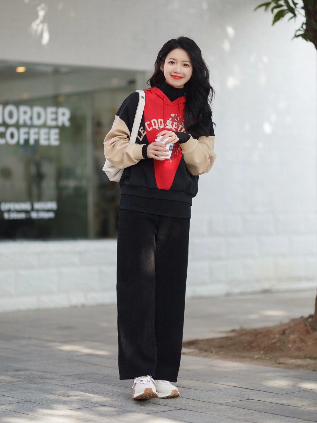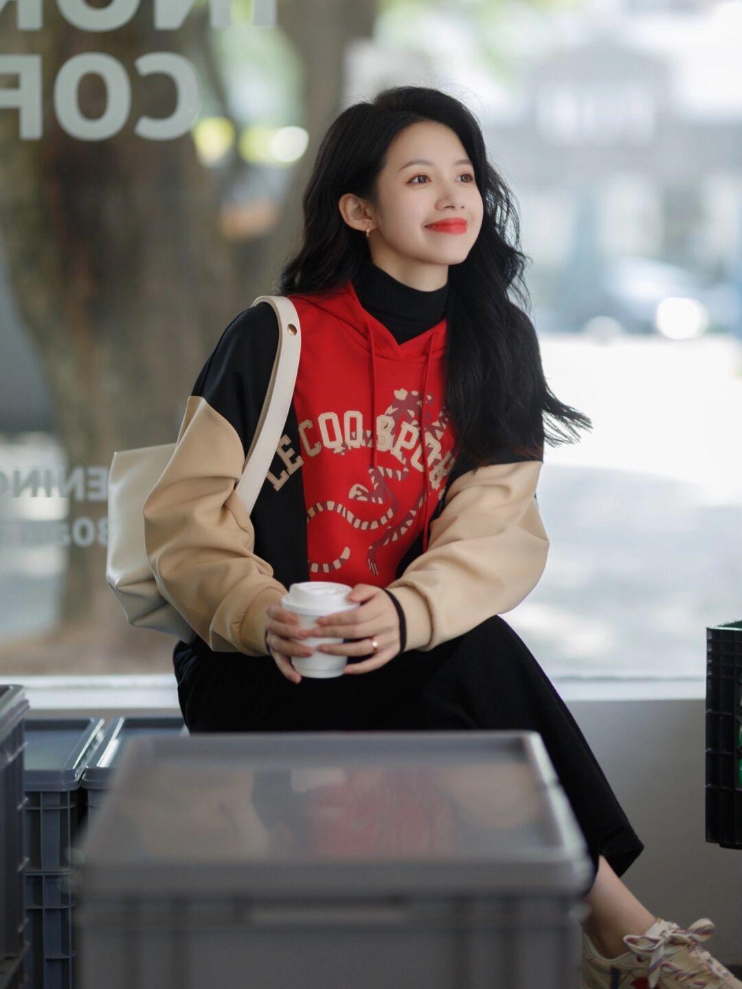 如果想摆脱“学生气”,就要尽量去避免版型过于宽松的卫衣,因为那样看起来比较松垮,虽然多了几分随性美,但女人味也会被削弱,宽松卫衣更适合图舒服的时候穿,如果追求魅力,那博主身上的款式会很适合你,不会太松垮,还会起到遮肉显瘦的作用。