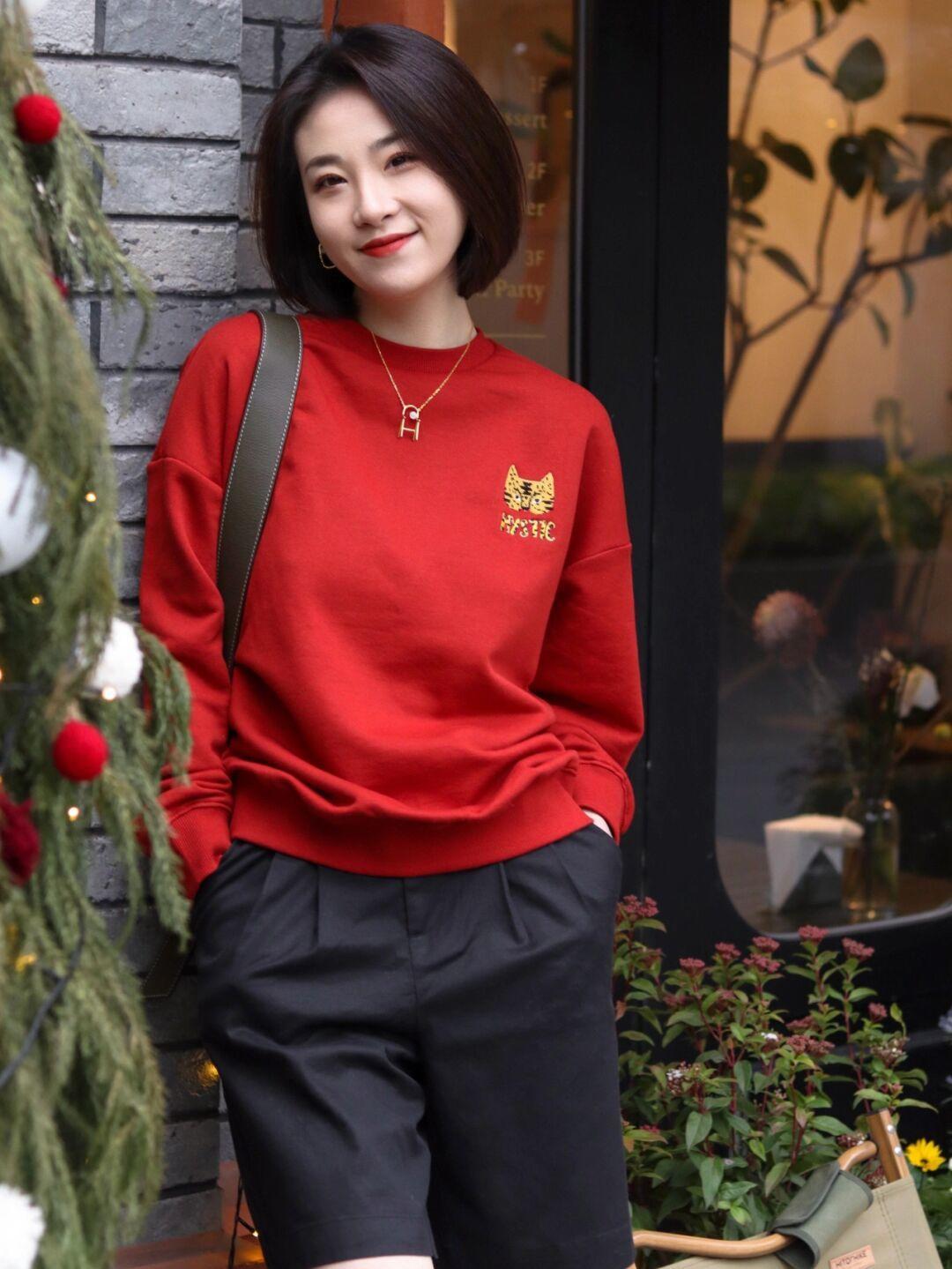 优雅熟女还可以借鉴下面的looks,一件红色的无帽套头卫衣,它的厚度适中,适合在南方的城市进行单穿,如果你太怕冷,可以搭配大衣、羽绒服一起穿,都不会有太大的问题,红色醒目大气,更适合气质明艳出挑的女性,成熟起来穿果会更。