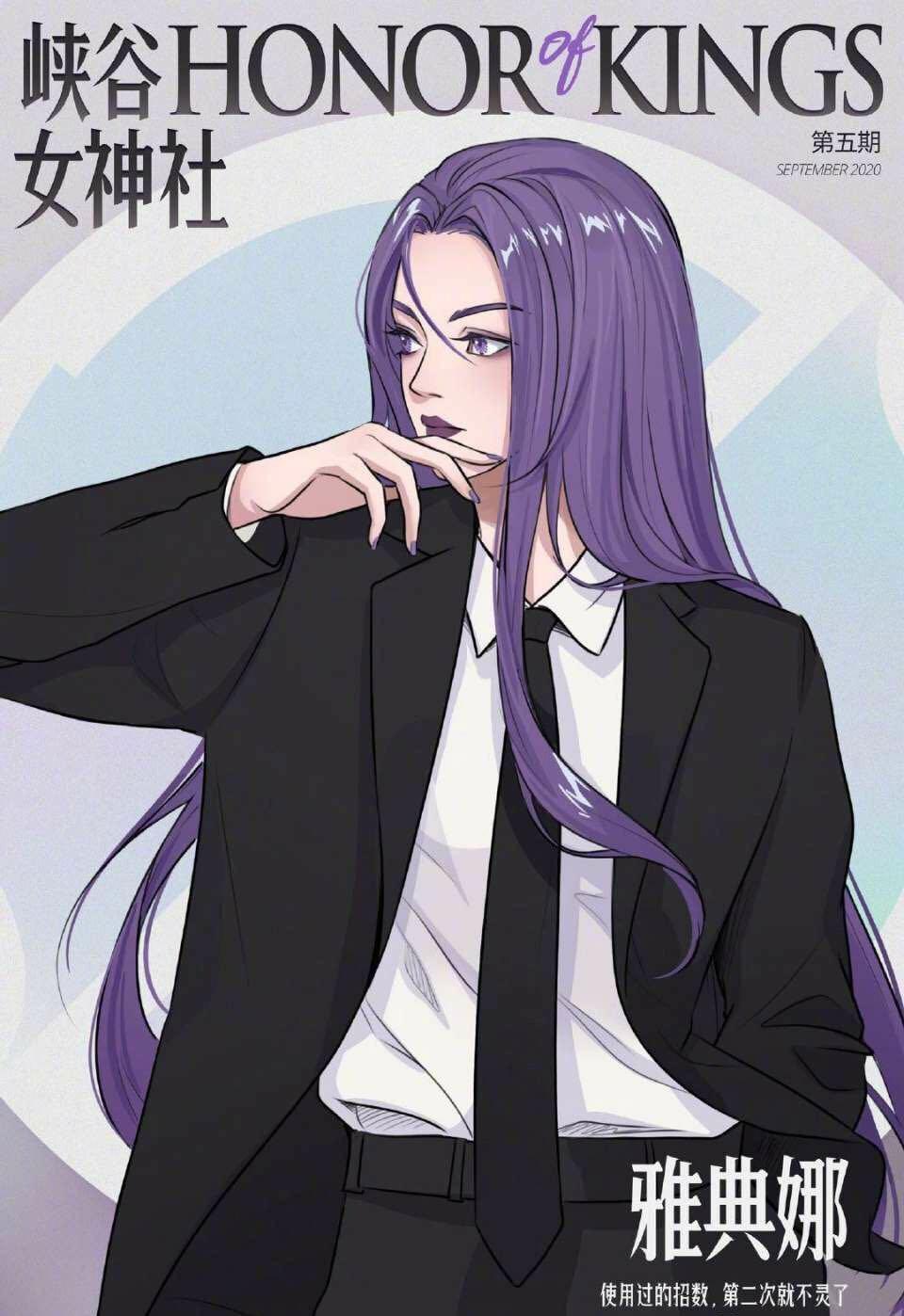 雅典娜是一名刺客,可是穿上了男版西服之后,乍一看像是黑帮老大,又一看又像是大哥的女人,一席黑色西服加雅典娜的紫色长发,还有紫色美瞳,真的是怎么看怎么都帅气!