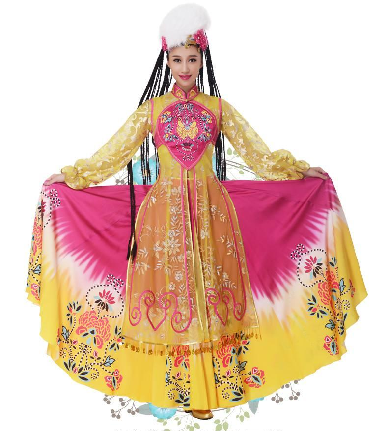 维吾尔族女装 维吾尔族女子喜欢穿裙子,并选择明亮的丝绸或羊毛裁制的裙子。常见的面料是红色、亮绿色和金色,下面是浅色的连衣裙。更喜欢原来的“阿德莱斯”缝纫连衣裙。在节日,节日,甚至周末,市场,村庄和山区随处可见用不同颜色和图案的奥的朗丝绸制成的花裙。如云的丝绸图案,色彩鲜艳,气势恢宏,彰显了造物主的精神才华。维吾尔族人称之为“游不府能卡那提古力”,它给人们带来了春天和美好的祝福。维吾尔族妇女的服装款式很多,有长外套、短外套、马甲、背心、衬衫、裤子、裙子等。维吾尔族人不仅喜欢种花,而且喜欢在衣服上绣各种花纹。维吾尔族女子喜欢在领口、胸部、袖口、肩膀和裤腿上绣花。