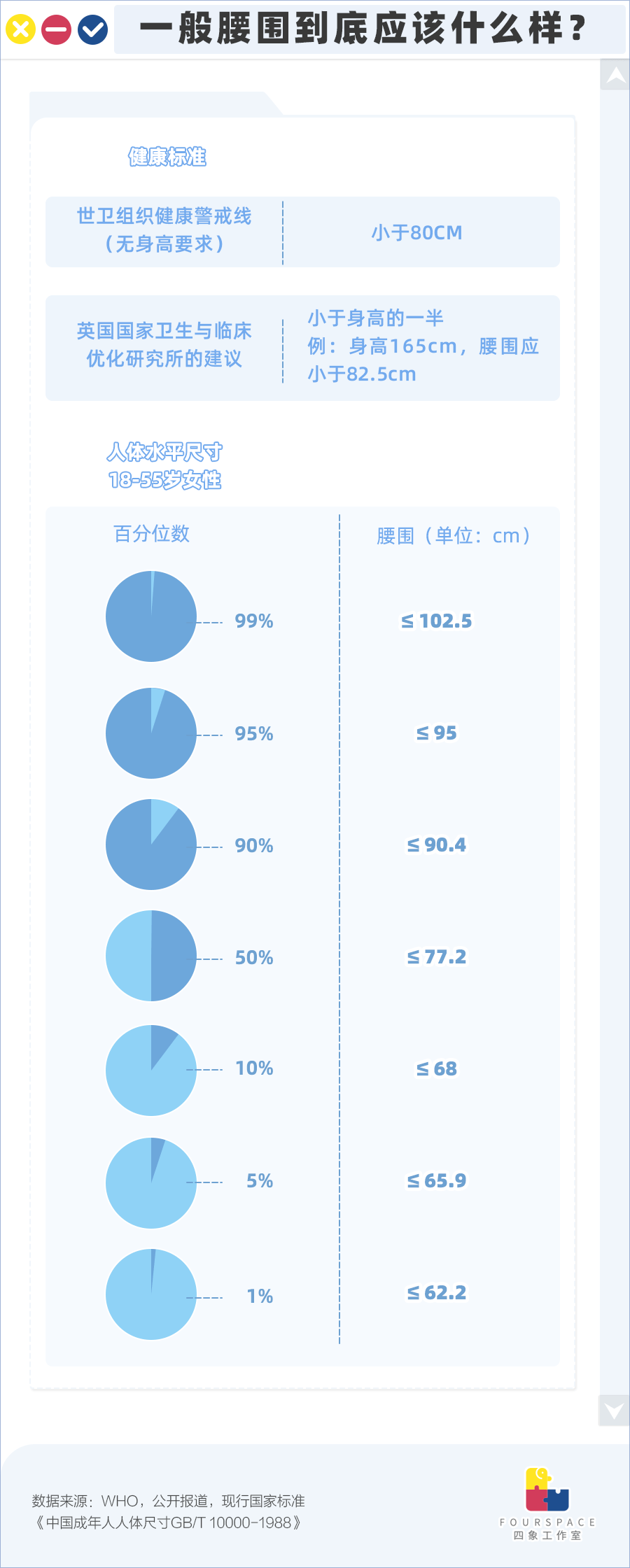 如果出于健康考虑,世卫组织只给出了推荐的健康上限标准为80cm,这显然是一个会被许多潮流女装拒之门外的尺寸。