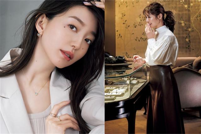 右图:以白色为主导的穿搭,让心情轻松舒适,有种托着幸福的心情,庆祝重要的日子到来。双排扣西装和带有飘逸流苏下摆的超长丝绸半身裙,可以根据自己的环境和心情轻松搭配。
