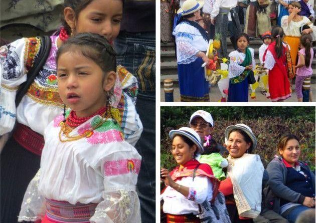 Kichwas是在厄瓜多尔安第斯山脉发现的民族之一。这些被分为几个不同的种族。例如,在厄瓜多尔北部,我们发现了奥塔瓦洛族群。奥塔瓦洛斯的传统女性服装包括一件绣有花朵的白色上衣和两条裙子的叠加,其中一条裙子是深色的。两条色彩鲜艳的腰带将它们托起。妇女们还把披肩披在肩上,并用带有金珠的大项链装饰自己。与更南边的民族不同,他们头上不戴毡帽。