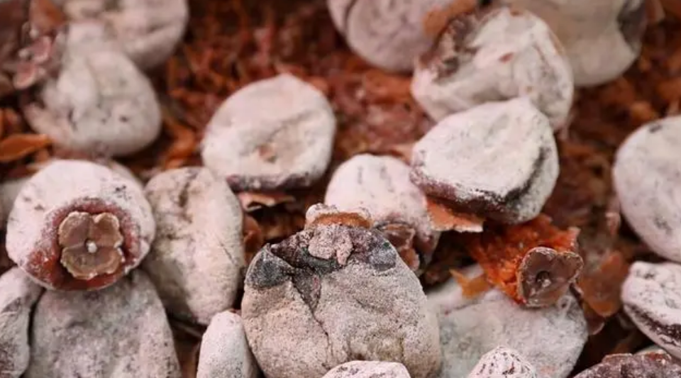 老人告诉她,这是当地特殊的工艺,用大缸制作柿饼,不仅出霜多,口感也更甜。于是她花费70多万元购买了700多口大缸,剩下的柿子全部放入大缸。
