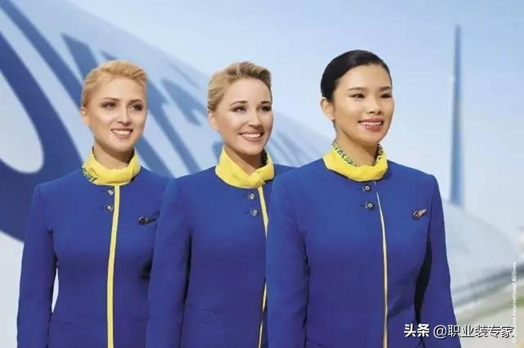 每个公司都有自己的企业文化和标志颜色,这也成为了不同航司之间的代表象征,合体的西装全配上了立领的搭配也更加的专业化,不得不说,乌克兰国际航空的制服,每一套都十足的好看。