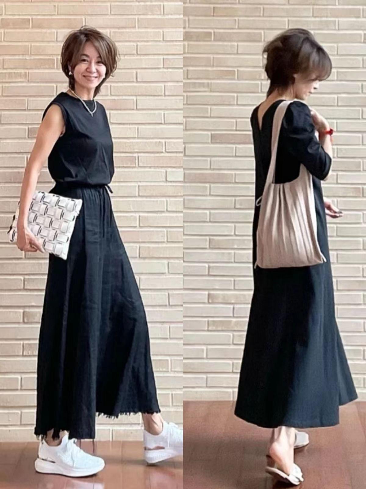 小黑裙是打造高级气质的“佼佼者”,很受日本女人的青睐。一般来看,上了年纪的日本主妇喜欢剪裁简约的黑色连衣裙,长度在膝盖下方,款式简约不简单。