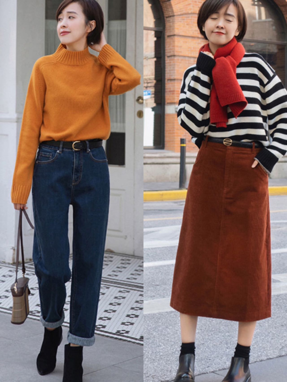 当然啦,说到这个秋冬季节一定要入手的单品,针织衫肯定是必不可少的,想要穿出时尚感,姐妹们可以去运用简单的纯色针织衫或者是个性的条纹针织衫凹造型,用这种简约款的服装彰显你的品味吧。