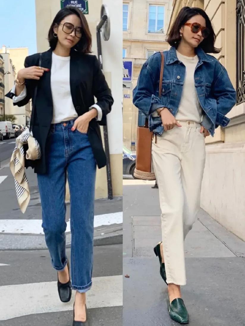 若是选择小脚九分裤,大家可以考虑与半长款西装或小夹克搭配,时尚果相当让人满意,还很有知性美感。
