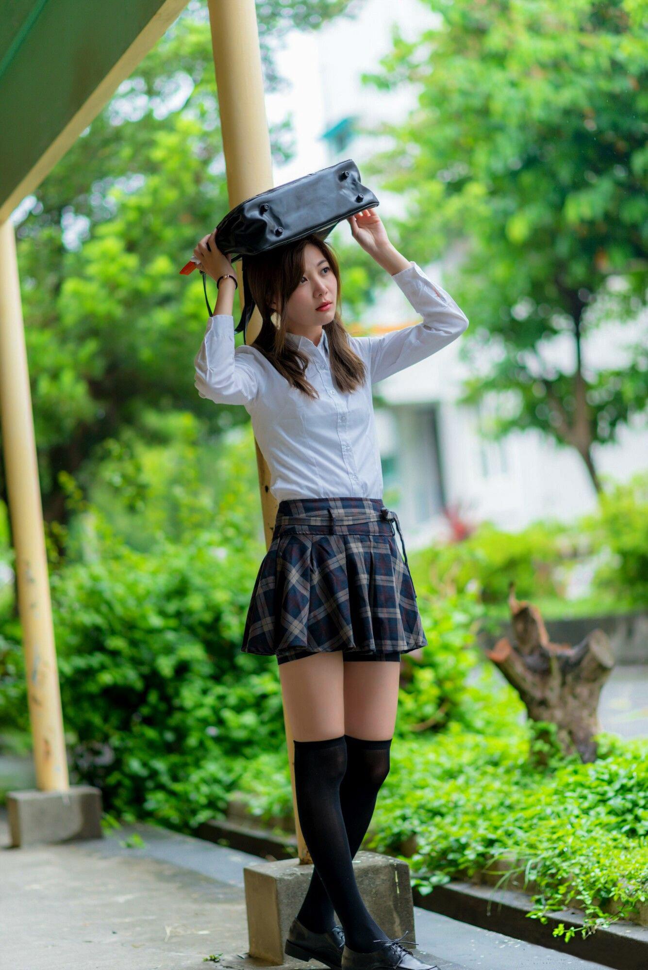 下身:西式JK制服配黑色丝袜
