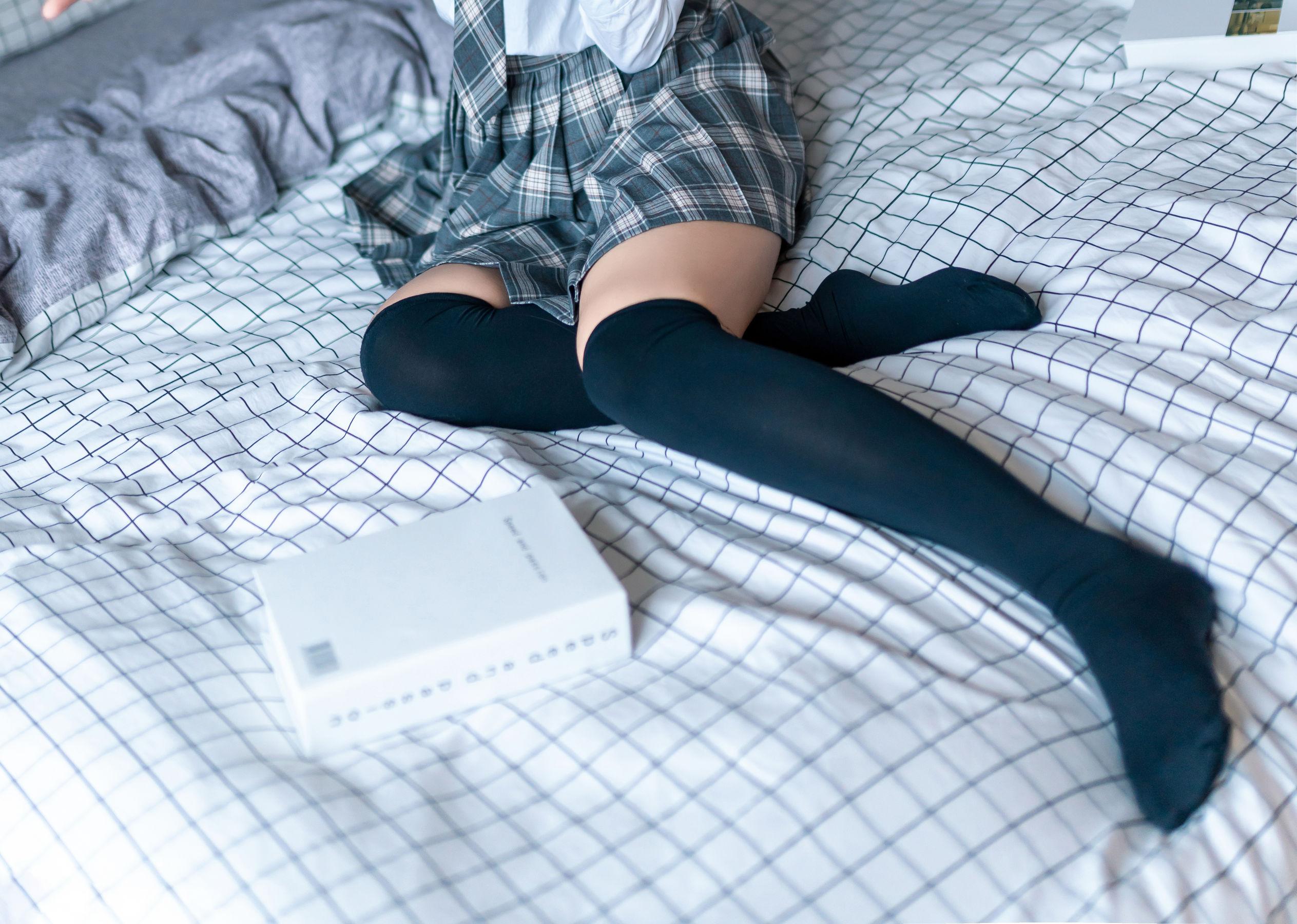 下身:西式JK短裙+黑色长筒袜