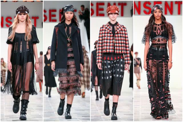 虽然是2020秋冬新季,但这季用的元素和前几季没什么大差别,渔网袜,花色大格子,轻薄纱质裙,还有各种让人看不懂的流苏。