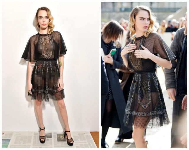 “卡抽”Cara Delevingne这次穿了一件网纱短裙搭配防水台高跟鞋,这套造型把cara的超模好身材展现了出来,但是裙子和鞋子都有些显廉价,风格和cara的攻气也不搭,全靠好身材与好妆发救场。