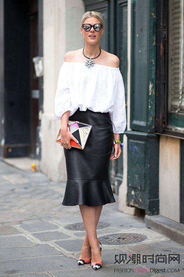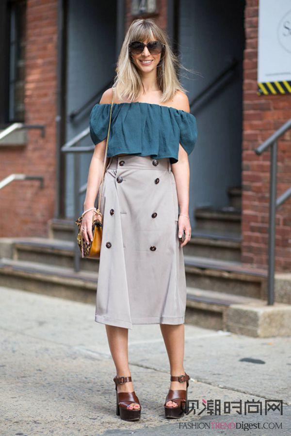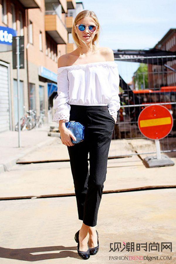 素色露肩上衣搭配,露出肩部的设计都是重点,恰到好处的展现清凉又浪漫的夏日风情!