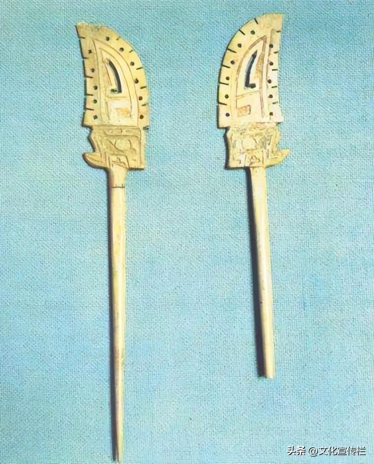 在笄的两端,此外还各有一条丝绳,叫做紞,从紞下垂下一颗玉来,这颗玉叫做瑱。因为两颗瑱垂下的位置,正好对着左右两耳,所以瑱又叫做充耳,或者塞耳。