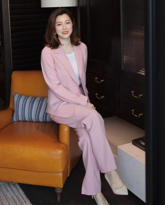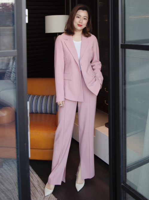 而且博主的粉色西装饱和度相对来说比较低,这样的话穿起来也不会很沉闷,低饱和度的西装更有利于修饰皮肤,搭配着精致的尖头高跟鞋,特别优雅,女人味十足。