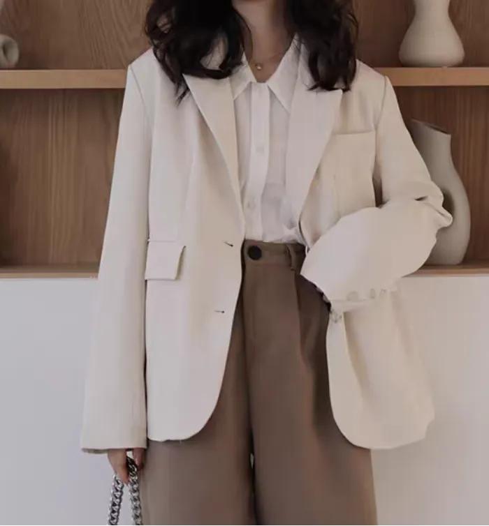 西装配牛仔裤,里面再搭配个白色衬衫,应该是现在很多职业女性的喜爱吧!因为这样的穿搭,给人的感觉既不会太严肃,又会让人感觉简洁大方,而且比较偏休闲慵懒风,也是职场女性的不二之选哦!我们可以根据三色原则来选择穿衣搭配,就是裤子,外套,内穿选择不同的颜色,来进行搭配,具体想要什么风格穿搭,就要根据你选择的衣服的类型来进行判断啦!