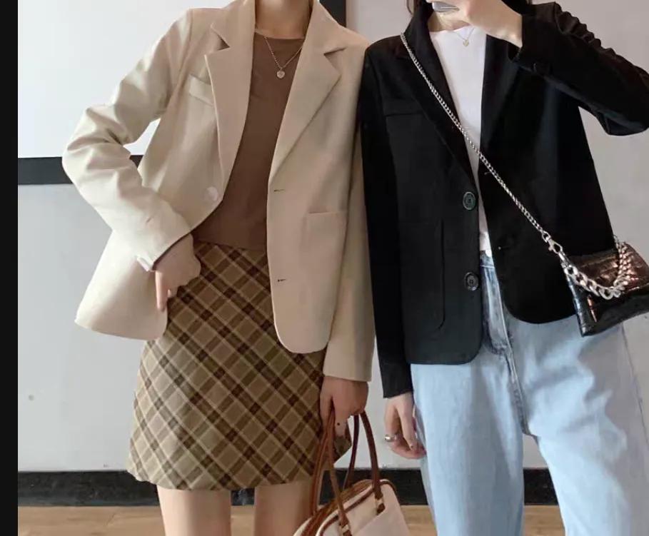图二的穿搭,偏韩国风,给人的感觉就会很有亲和力,而且很有活力。我们选择穿搭的时候,可以根据内一色选择,也就是里面搭配选择同色类,外面搭配一个浅色系外套,按这样的搭配来穿搭,你也可以成为别人眼中的职场女神哦!