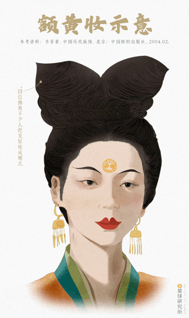 此外,佛教得到了发展和加强,女性的妆容也从白眉黑眉的浅色“素颜”变成了模仿佛像的“黄额妆”。