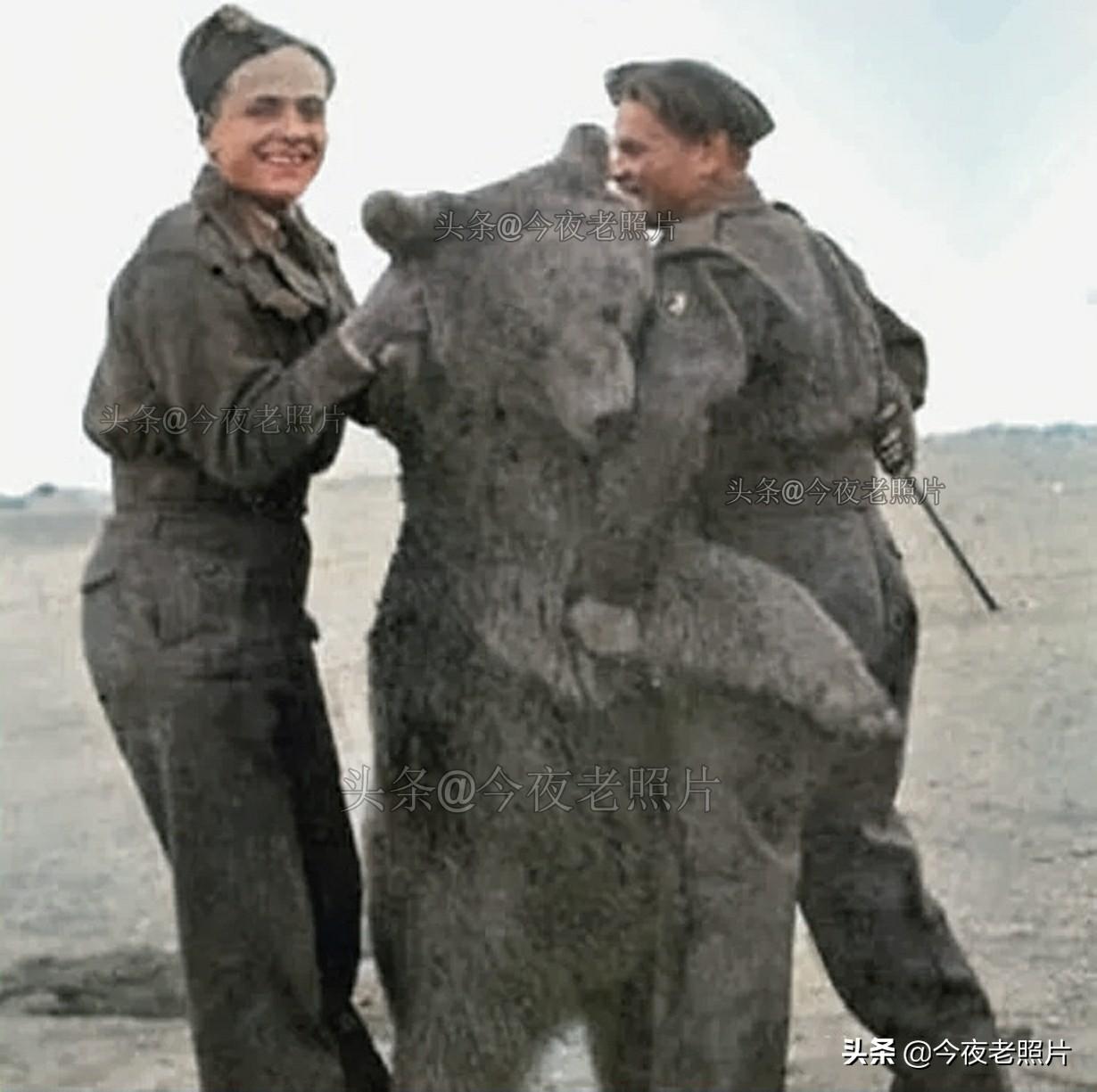 20、1942年, 波兰,这只黑熊叫“佛伊泰克”,自幼被波兰军队收留,长大后在一线搬运炮弹,很卖力也不惧炮火的惊吓。后把它正式入编,拥有下士军衔并享受军饷。战后,被送到苏格兰动物园安享晚年,直到1963年12月去世,终年22岁。