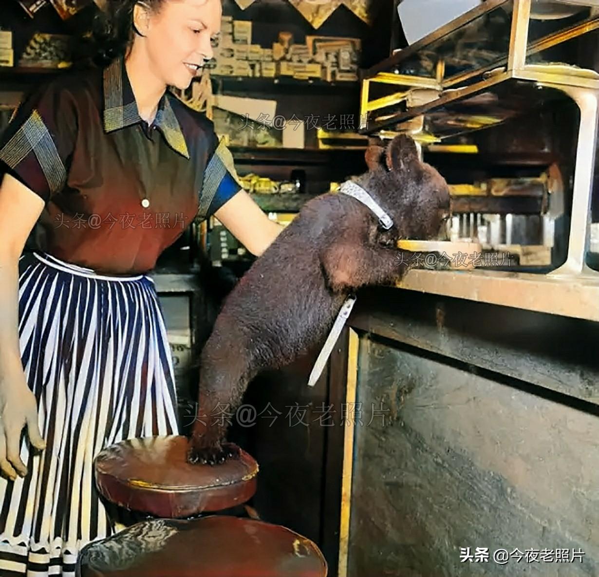 17、1930年,美国经济危机时,穷人食不果腹,富太太依然带着宠物熊去甜品店消费。