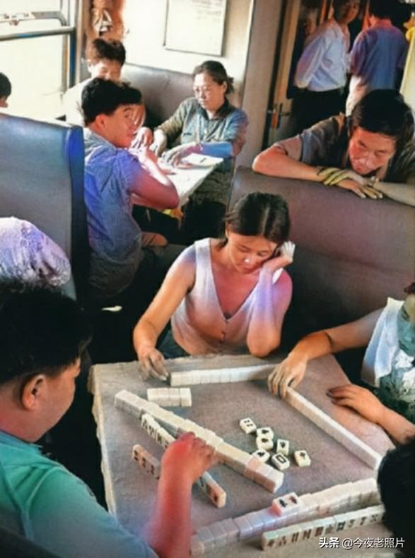 03、1994年,从北京开往辽宁的绿皮火车上,由于路途遥远火车慢,旅客们凑在一起打八圈都不一定到。如今在火车上搓麻将的人很少见了,人们都抱着手机打卡发朋友圈。
