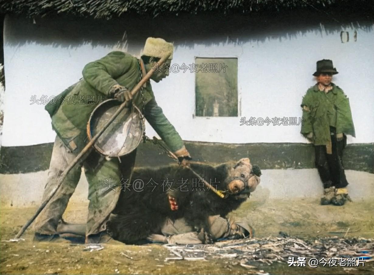 23张罕见照:穿女人内衣的德军,日军看汉奸搓麻将,遛黑熊的英军
