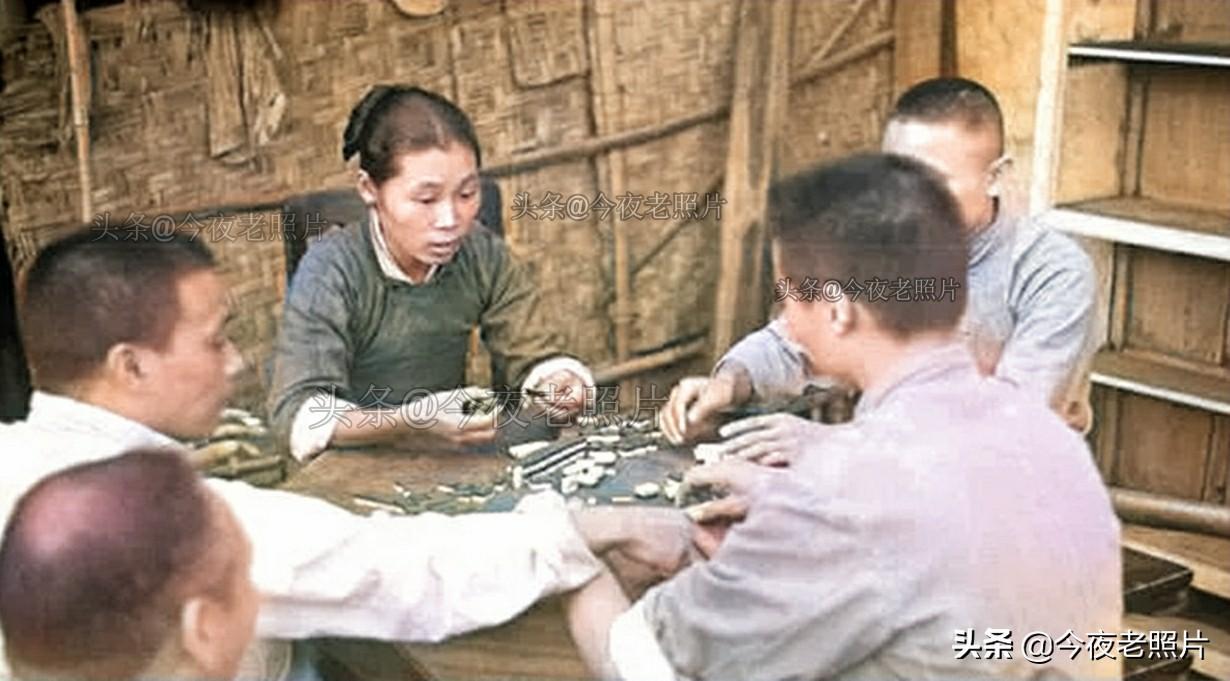 04、1938年左右,日军在北方拍的伪亲善照片, 汉奸们在日军的注视下,悠然自得地玩着麻将。看桌上的银元,玩得会不小了,不知道后这些钱装谁腰包里了。当时日军主要屯兵在大城市和资源战略要地,比如铁道游击队所在地,有煤炭也是铁路枢纽,鬼子重兵把守。也有啥没有的县城,就几个鬼子带着伪军把守。