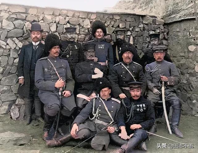 侵略者的合影1905年,日俄战争结束后,俄国军官和日本军官在中国旅顺的合影。