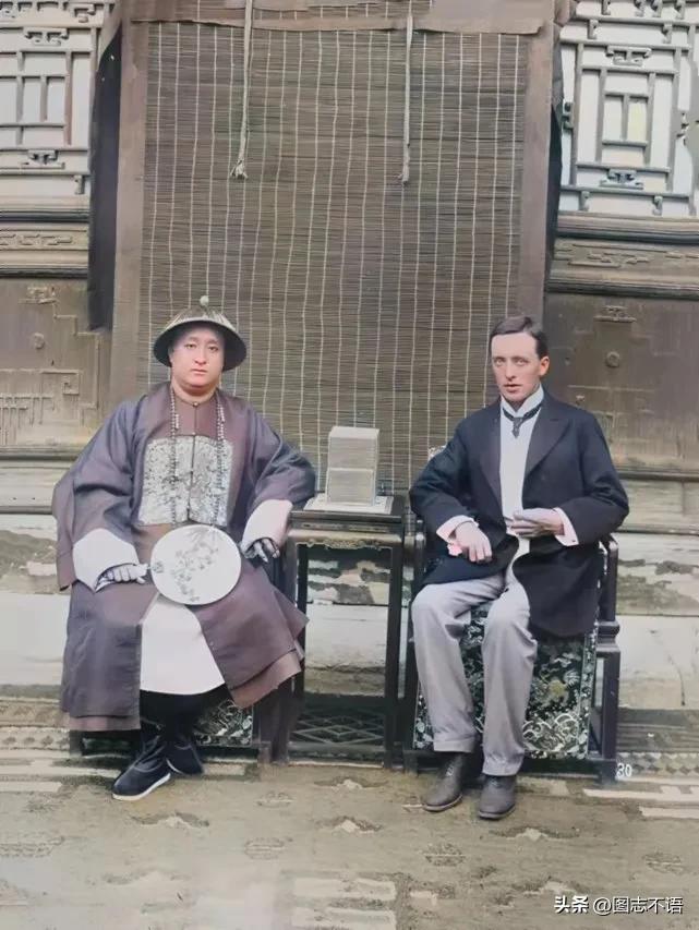 清朝官员和他的英国朋友一位清朝官员和一位来自英国的公爵正坐在一起合影。