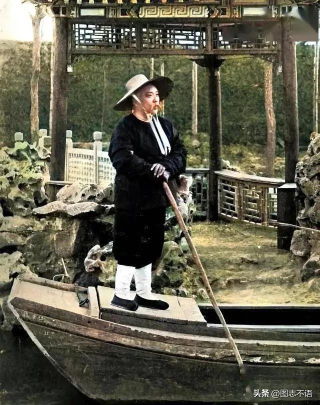 赋闲在家的袁世凯光绪皇帝和慈禧太后驾崩后,为夺取权利,摄政王载沣以“足疾”为由,将袁世凯赶回到安阳老家赋闲。这张照片就是袁世凯赋闲时所拍,他一身渔翁打扮泛舟湖上。