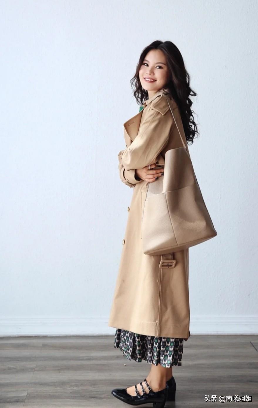 今年热门的中年穿搭是属“风衣+膝下裙”的搭配了,八分、九分的膝下裙搭配展现脚踝的曲线,不仅显得优雅大气又可以呈现好的气质,重要的是这两个单品组合的搭配,遮肉又显瘦。
