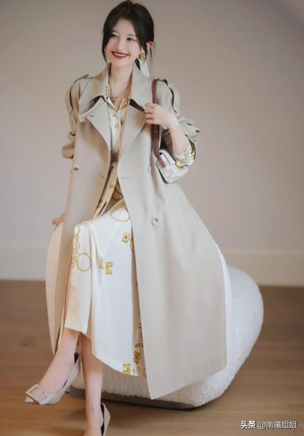 而比较略微宽松、休闲感较强的裙装搭配就会具有减龄、时尚的气质衬托,所搭配的风衣好也要基础、百搭的色系和版型,鞋型的选择搭配则就是低跟、或者是平底鞋会更舒适大气。