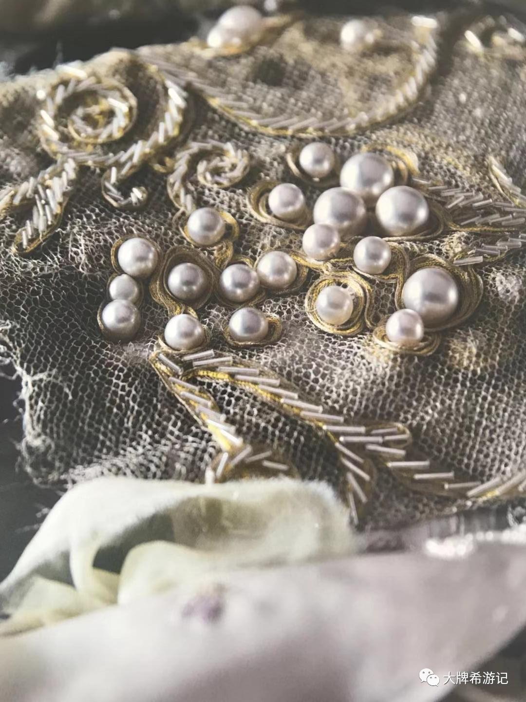 Lesage工坊每年要消耗 30公斤珍珠与上百万亮片,对它们而言只是沧海一粟。配料库存高达 60公斤 ,水晶与玻璃珠被装在小牛皮纸袋里,光是收纳抽屉就占了一面墙。库存里的神奇小料应有尽有,丝线,塑料彩线,缎带,登山绳,蕾丝花瓣,纤维塑料花……一切不起眼的小物在服装设计师和刺绣工匠们的通力下变得叹为观止,如梦似幻。