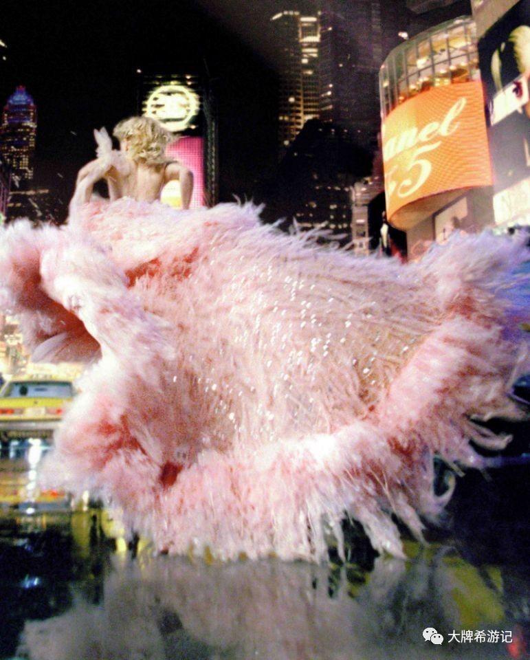 Lemaire经典的作品就是2004年妮可基德曼演绎的Chanel No.5香水广告,粉色大摆尾长裙,裙尾是绣有银色水晶的